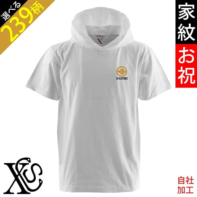 家紋お祝 還暦 ワンポイント 刺繍 オリジナル 5.6オンス フーディ Tシャツ 半袖 パーカー メンズ ヘビーウェイト カットソー 柄 ロゴ ギフト プレゼン ori-am-pkn4-g07-s