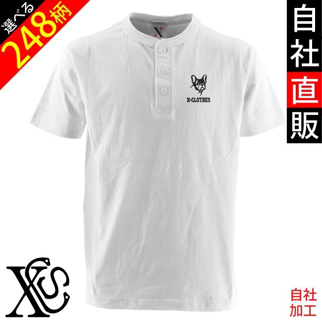 ワンポイント 刺繍 オリジナル 5.6オンス ヘンリーネック Tシャツ メンズ 半袖 カットソー ブラック ホワイト 黒 白 柄 ロゴ ギフト プレゼント 誕生日 父の日 母の日 犬 猫 馬 象 パンダ 狼 虎 ライオン 野菜 魚 花 文鳥 グッズ ori-am-tst5-g01-s | 刺繍の森X-CLOTHES【公式通販サイト】