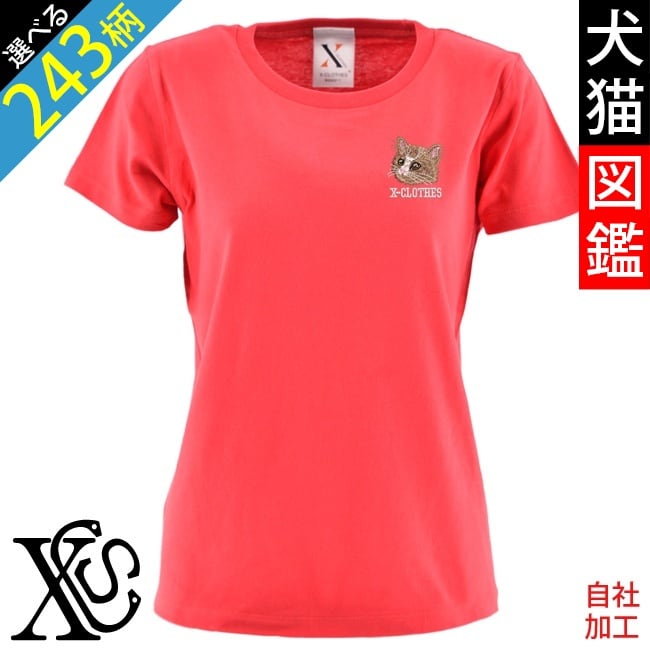 リアル 犬 猫 tシャツ 刺繍 プレゼント 5.6oz オリジナル 半袖 Tシャツ レディース ワンポイント ロゴ おしゃれ 無地 カットソー 和グッズ 柄 柴犬 チワワ シーズー シュナウザー パグ フレンチブルドッグ X-CLOTHES 猫図鑑 犬図鑑 ori-aw-tst2-r10-s