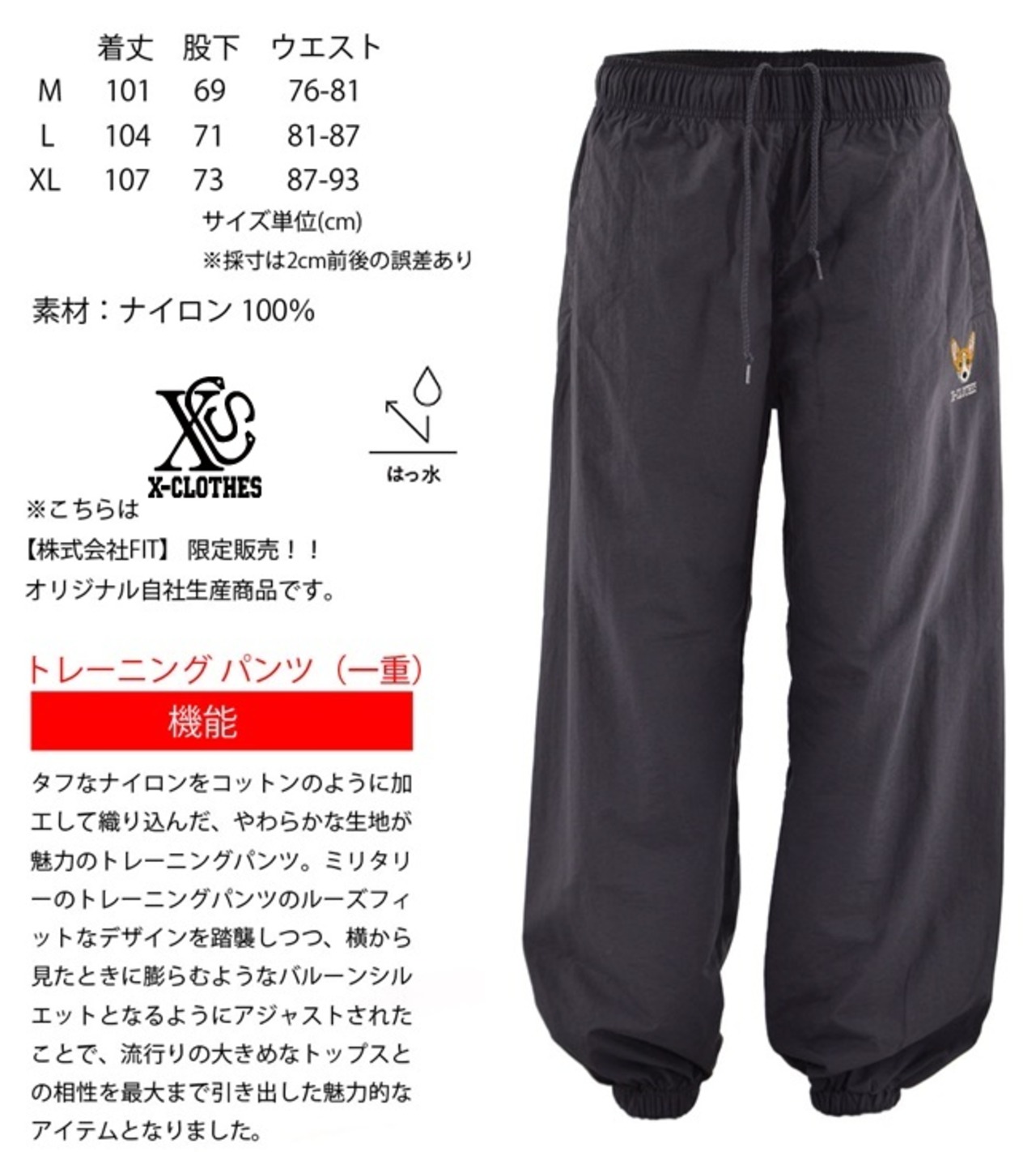 コットンライク ナイロン トレーニング パンツ メンズ オリジナル ワンポイント 刺繍 軽やかな ミリタリー バルーンシルエット 柄 ロゴ グッズ プレゼント ギフト 母の日 父の日 スポーツ シルエット 自社ブランド 野球 テニス サッカー 剣道 柔道 ori-a-pat10-b05-s | 刺繍の森X-CLOTHES【公式通販サイト】