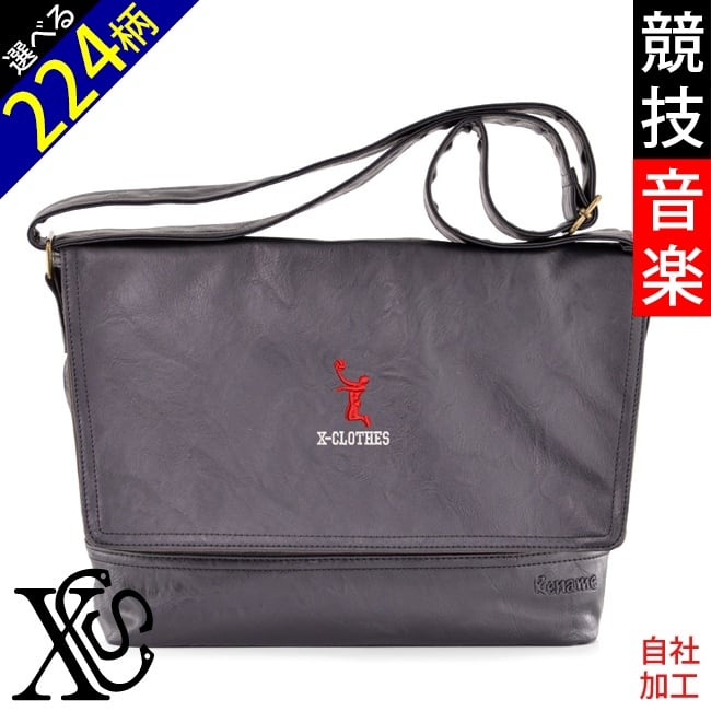 スポーツ シルエット ワンポイント 刺繍 フェイクレザー PU 合皮 ショルダーバッグ レディース メンズ オリジナルおしゃれ 無地 ショルダーバック 黒 ブラック グッズ 文字 面白い おもしろ 卒団 記念品 部活 卒業 ori-a-bag42-b08-s