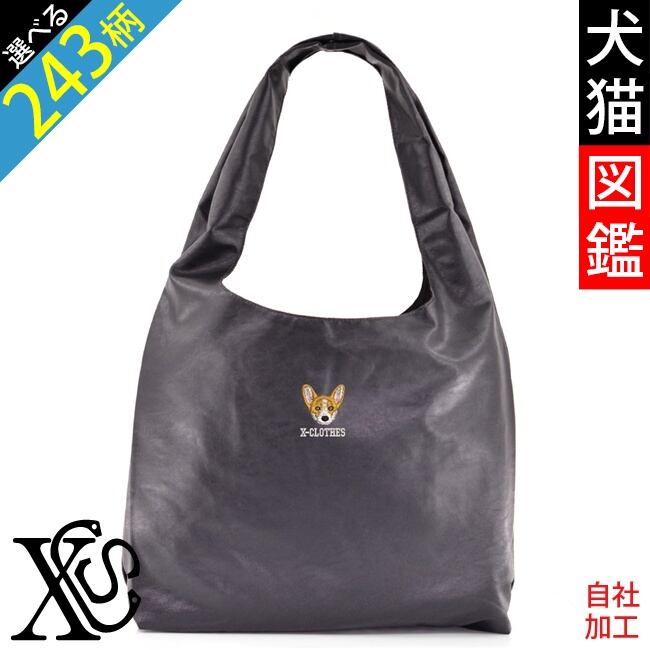 リアル 犬 猫 トートバッグ 刺繍 プレゼント ワンポイント 合皮 ビッグ レディース ソフトフェイクレザー オリジナル グッズ PU おしゃれ 無地 トートバック マザーズ 黒 サイズ 柄 柴犬 チワワ シーズー シュナウザー パグ X-CLOTHES 猫図鑑 犬図鑑 ori-a-bag45-b10-s