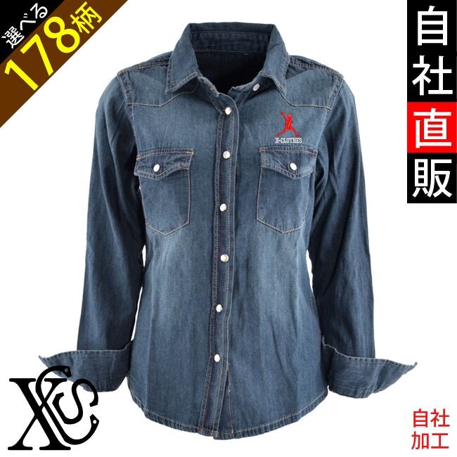 ワンポイント 刺繍 薄手 ウエスタン スラブ ベーシック デニム シャツ レディース オリジナル 自社ブランド ロゴ グッズ 柄 シルエット サッカー 野球 テニス 空手 剣道 卓球 釣り 誕生日 プレゼント スポーツ ori-aw-dts5-b05-s | 刺繍の森X-CLOTHES【公式通販サイト】