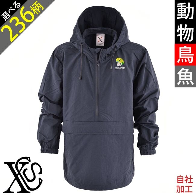 動物鳥魚 刺繍 オリジナル ワンポイント ナイロン アノラック パーカー メンズ 一重 パッカブル ワッシャー加工 自社ブランド ロゴ グッズ 柄 おしゃれ プレゼント 馬 鳥 インコ 文鳥 パンダ 魚 動物 ori-am-jkt8-b06-s