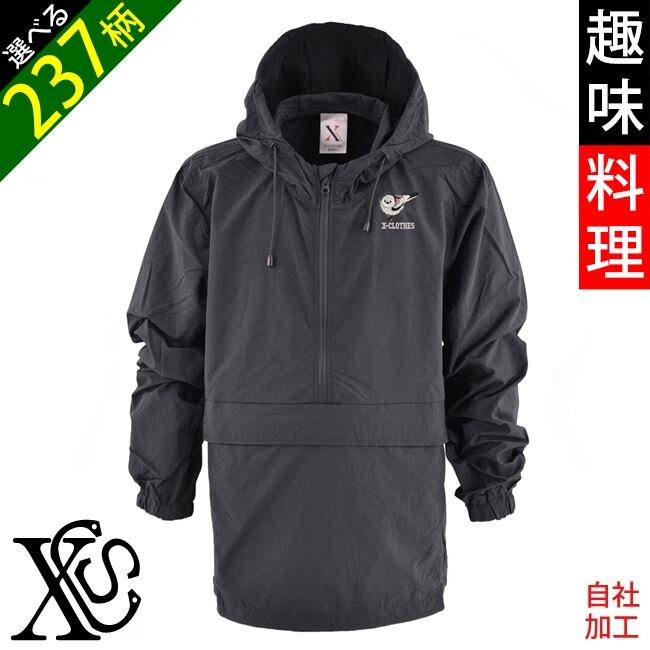 面白 野菜 果物 電車 花 オリジナル 刺繍 ワンポイント ナイロン アノラック パーカー メンズ 一重 パッカブル ワッシャー加工 自社ブランド ロゴ グッズ 柄 ori-am-jkt8-b09-s