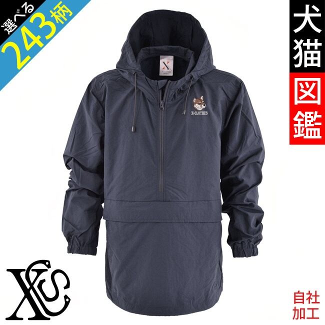 リアル 犬 猫 オリジナル 刺繍 ワンポイント ナイロン アノラック パーカー メンズ 一重 パッカブル ワッシャー加工 自社ブランド ロゴ グッズ 柄 誕生日 プレゼント 三毛猫 柴犬 チワワ シーズー シュナウザー パグ ペキニーズ ori-am-jkt8-b10-s