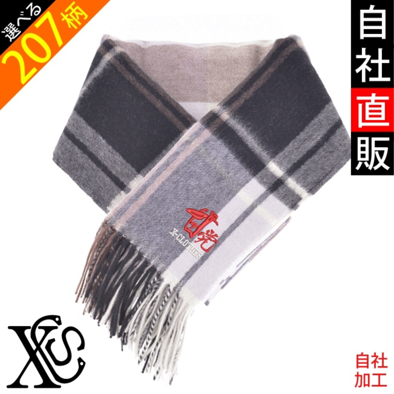 カシミヤ100% オリジナル 刺繍 ワンポイント カシミヤ100% ストール チェック柄 ブランケット レディース メンズ 無地 自社ブランド ロゴ グッズ 柄 おしゃれ 誕生日 プレゼント オモシロ 文字 面白い 四文字熟語 飲酒党 もやし 辛党 ori-aw-st15-b03-s | 刺繍の森X-CLOTHES【公式通販サイト】