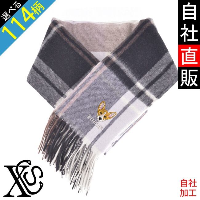 カシミヤ100% オリジナル 刺繍 ワンポイント カシミヤ100% ストール チェック柄 ブランケット レディース メンズ 無地 自社ブランド ロゴ グッズ 柄 誕生日 プレゼント 犬 三毛猫 柴犬 チワワ シーズー シュナウザー パグ ペキニーズ ori-aw-st15-b10-s | 刺繍の森X-CLOTHES【公式通販サイト】