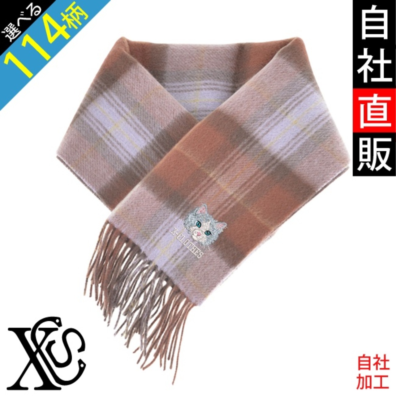 カシミヤ100% オリジナル 刺繍 ワンポイント カシミヤ100% ストール チェック柄 ブランケット レディース メンズ 無地 マフラー リバーシブル 自社ブランド ロゴ グッズ 柄 誕生日 プレゼント 犬 三毛猫 柴犬 チワワ シーズー シュナウザー パグ ペキニーズ ori-aw-st16-b10-s | 刺繍の森X-CLOTHES【公式通販サイト】