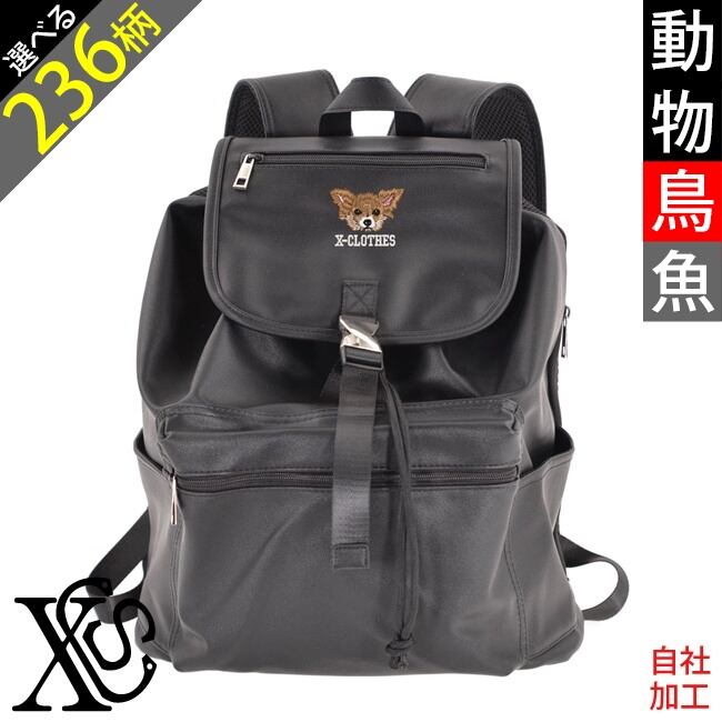動物鳥魚 刺繍 オリジナル ワンポイント フェイクレザー ギャザーデザイン バックパック 可愛い 韓国 リュックサック レディース メンズ 自社ブランド ロゴ グッズ 柄 おしゃれ プレゼント 馬 鳥 インコ 文鳥 パンダ 魚 動物 ori-a-bag55-b06-s