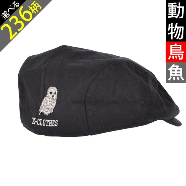 動物鳥魚 刺繍 オリジナル ワンポイント コットンスタンダード ハンチング メンズ レディース 帽子 ベレー帽 サイズ調整可能 自社ブランド ロゴ グッズ 柄 おしゃれ プレゼント 馬 鳥 インコ 文鳥 パンダ 魚 動物 ori-a-cap33-b06-s