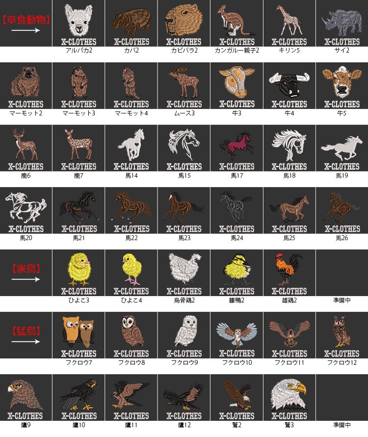 X-CLOTHES 動物鳥魚一覧:アイナメ アオリイカ アカハタ アカメバル アルパカ イカ イトウ イワトビペンギン インコ ウグイス ウサギ うなぎ エゾモモンガ オオハシ鳥 オカメインコ オジサン オニカサゴ カエル カバ カピバラ カメ カメレオン カワウソ カワセミ カワハギ カンガルー親子 カンパチ キジハタ キビタキ キリン キンクマハムスター キンメダイ クエ クロダイ コアラ ゴールデンハムスター コザクラインコ サイ サケ ザリガニ シーバス シマアジ シマエナガ シマリス ジョウビタキ シルバー文鳥 シロギス セキセイインコ セマルハコガメ タコ チーター チンチラ チンパンジー ツバメ トカゲ トビウオ トラフグ ナマズ ニジマス ネザーランドドワーフ ハシビロコウ ハチドリ ハムスター ハリセンボン ハリネズミ パンダ ひよこ ヒラマサ ヒラメ フェネックギツネ フェレット フクロウ フトアゴヒゲ 1 2 3 4 5 6 7 8 9 0