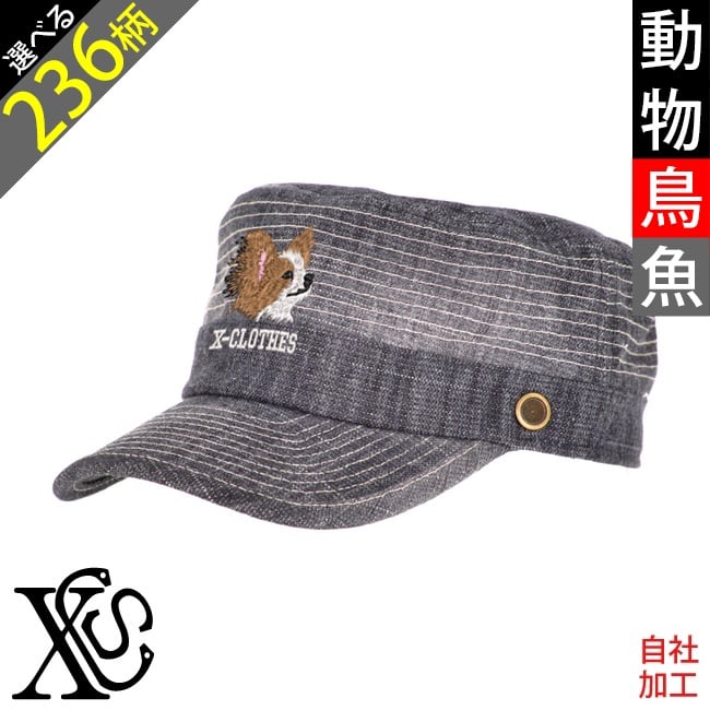 動物鳥魚 刺繍 オリジナル ワンポイント デニムステッチ ワークキャップ メンズ レディース 帽子 自社ブランド ロゴ グッズ 柄 おしゃれ プレゼント 馬 鳥 インコ 文鳥 パンダ 魚 動物 ori-a-cap36-b06-s