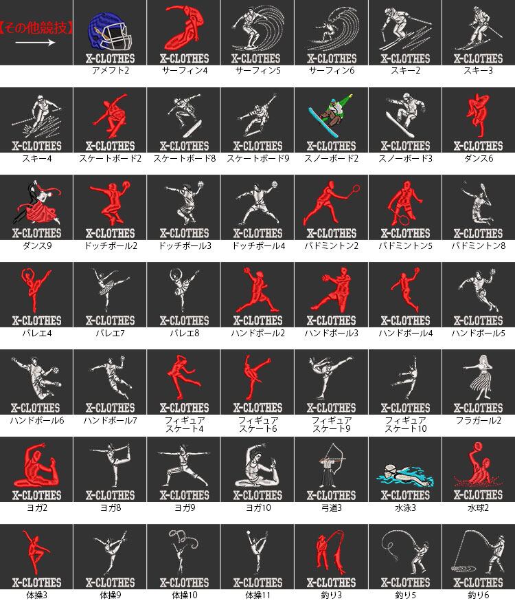 X-CLOTHES 競技音楽一覧:けん玉 アメフト キックボクシング ギター ゴルフ サッカー サックス サーフィン スキー スケートボード スノーボード ダンス ダーツ チューバ テニス トロンボーン ドッチボール ハンドボール バイオリン バスケ バドミントン バレエ バレーボール ピアノ フィギュアスケート フラガール ベース ボクシング ボーリング マラソン ムエタイ ヨガ ラグビー ラケット 体操 剣道 卓球 和太鼓 囲碁 大相撲 居合 弓道 柔道 歌舞伎 水泳 水球 白連獅子 白連獅子毛振り 空手 競艇 競輪 競馬 茶道 西馬音内盆踊り 赤連獅子 赤連獅子毛振り 越中おわら踊り 郡上踊り 野球 釣り 阿波踊り 陸上 陸上走り 音符 麻雀-発 1 2 3 4 5 6 7 8 9 0