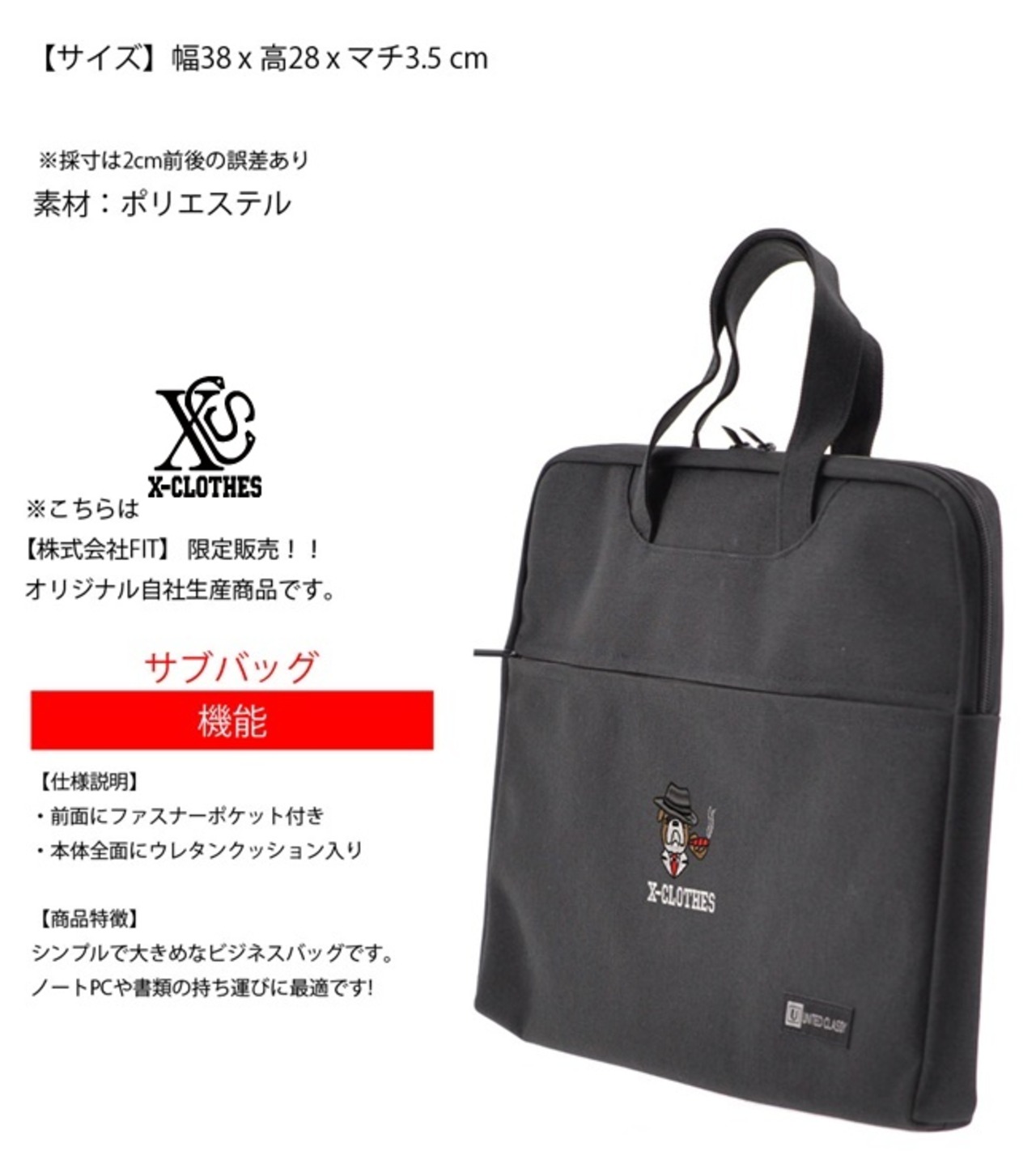 リアルシマエナガ 馬 パンダ ワンポイント 刺繍 グッズ ビジネス バッグ サブバッグ メンズ レディース ノートPC 書類 持ち運び ブラック 黒 バック 柄 ハシビロコウ 猫 犬 馬 ハリネズミ グッズ ori-a-bag61-b09-s | 刺繍の森X-CLOTHES【公式通販サイト】