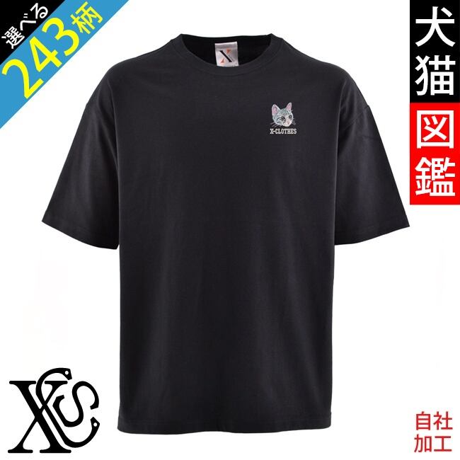 リアル 犬 猫 ワンポイント 刺繍 5.6オンス ビッグシルエット 半袖 Tシャツ メンズ グッズ 白 ホワイト カットソー 黒 ブラック 柄 柴犬 チワワ シーズー シュナウザー パグ ori-am-tst6-b10-s