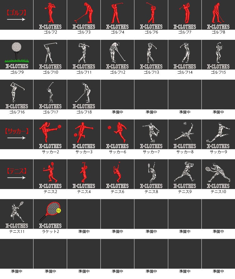 X-CLOTHES 競技音楽一覧:けん玉 アメフト キックボクシング ギター ゴルフ サッカー サックス サーフィン スキー スケートボード スノーボード ダンス ダーツ チューバ テニス トロンボーン ドッチボール ハンドボール バイオリン バスケ バドミントン バレエ バレーボール ピアノ フィギュアスケート フラガール ベース ボクシング ボーリング マラソン ムエタイ ヨガ ラグビー ラケット 体操 剣道 卓球 和太鼓 囲碁 大相撲 居合 弓道 柔道 歌舞伎 水泳 水球 白連獅子 白連獅子毛振り 空手 競艇 競輪 競馬 茶道 西馬音内盆踊り 赤連獅子 赤連獅子毛振り 越中おわら踊り 郡上踊り 野球 釣り 阿波踊り 陸上 陸上走り 音符 麻雀-発 1 2 3 4 5 6 7 8 9 0