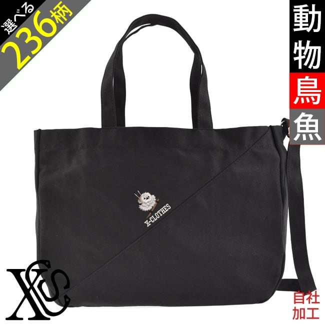動物鳥魚 刺繍 オリジナル ワンポイント キャンバス 2WAY ショルダーバッグ メンズ レディース トートバッグ グッズ 自社ブランド 柄 馬 豚 魚 ori-a-bag77-b06-s