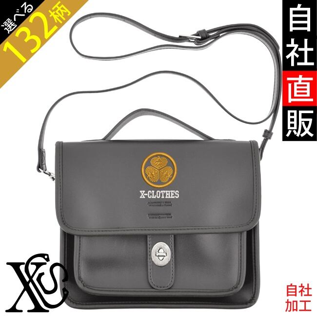 家紋 ワンポイント 刺繍 フロントバックル 横型ショルダーバッグ メンズ レディース トートバック グッズ 自社ブランド 柄 丸に 五瓜 桔梗 巴 藤 羽 菱 唐花 木瓜 蔦 桐 ori-a-bag83-b07-s | 刺繍の森X-CLOTHES【公式通販サイト】