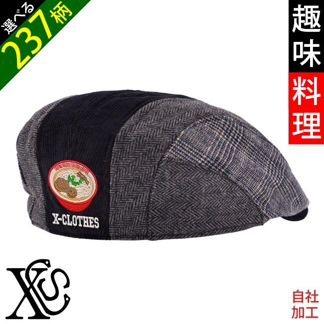 面白 野菜 果物 電車 花 オリジナル 刺繍 ワンポイント チェック切替 ハンチング メンズ レディース 帽子 ベレー帽 自社ブランド ロゴ グッズ 柄 ori-a-cap43-b09-s