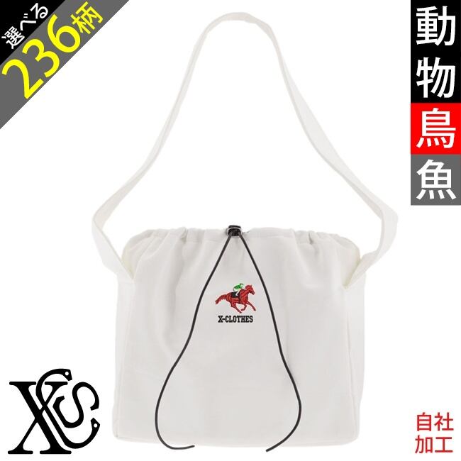 動物鳥魚 刺繍 オリジナル ワンポイント 巾着 ショルダーバッグ レディース メンズ ショルダーバック 斜め掛け 雑貨 グッズ 自社ブランド 柄 馬 豚 魚 ori-a-bag85-g06-s