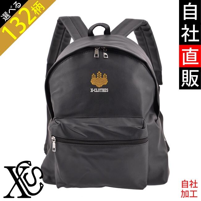 家紋 ワンポイント 刺繍 スクエア バックパック リュック メンズ レディース デイパック フェイクレザー 雑貨 グッズ 自社ブランド 柄 丸に 五瓜 桔梗 巴 藤 羽 菱 唐花 木瓜 蔦 桐 ori-a-bag95-b07-s