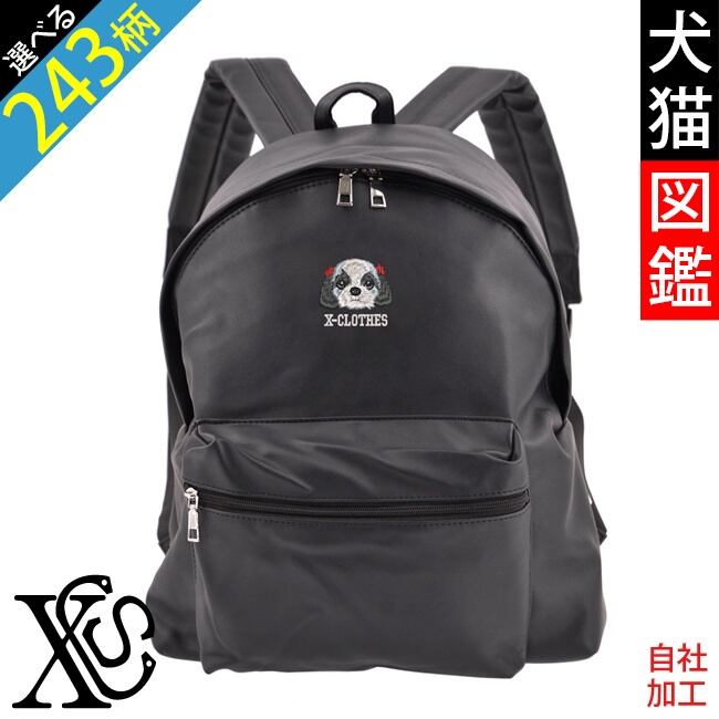 リアル 犬 猫 ワンポイント 刺繍 スクエア バックパック リュック メンズ レディース デイパック フェイクレザー 雑貨 グッズ 自社ブランド 柄 柴犬 チワワ シーズー シュナウザー パグ ori-a-bag95-b10-s