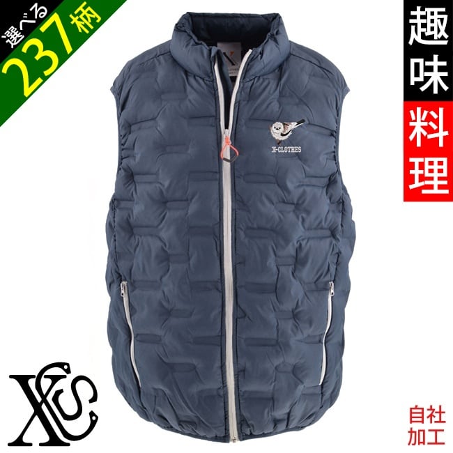 面白 野菜 果物 電車 花 オリジナル 刺繍 ワンポイント 中綿 ベスト フェイクダウンベスト メンズ パデット デュスポ 型押し 自社ブランド ロゴ グッズ 柄 ori-a-bst3-b09-s