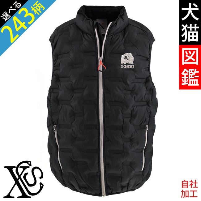 リアル 犬 猫 オリジナル 刺繍 ワンポイント 中綿 ベスト フェイクダウンベスト メンズ パデット デュスポ 型押し 自社ブランド ロゴ グッズ 柄 誕生日 プレゼント 三毛猫 柴犬 チワワ シーズー シュナウザー パグ ペキニーズ ori-a-bst3-b10-s
