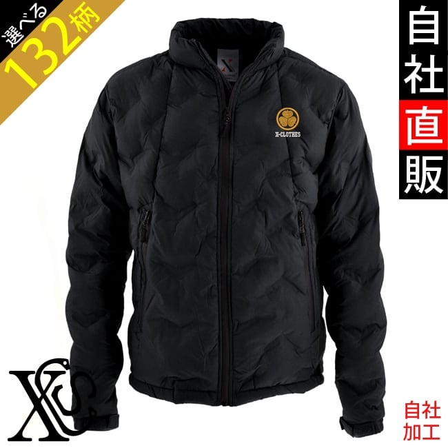 家紋 オリジナル 刺繍 ワンポイント フェイクダウンジャケット メンズ デュスポ 型押し スタンドカラー パデット ジャケット 自社ブランド ロゴ グッズ 柄 誕生日 プレゼント 家紋 丸に 五瓜 桔梗 巴 藤 羽 菱 唐花 木瓜 蔦 桐 ori-a-jkt11-b07-s | 刺繍の森X-CLOTHES【公式通販サイト】