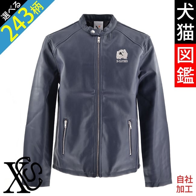 リアル 犬 猫 オリジナル 刺繍 ワンポイント ライダース ジャケット メンズ フェイクレザー 合皮 ブルゾン 自社ブランド ロゴ グッズ 柄 誕生日 プレゼント 三毛猫 柴犬 チワワ シーズー シュナウザー パグ ペキニーズ ori-am-jkt9-b10-s