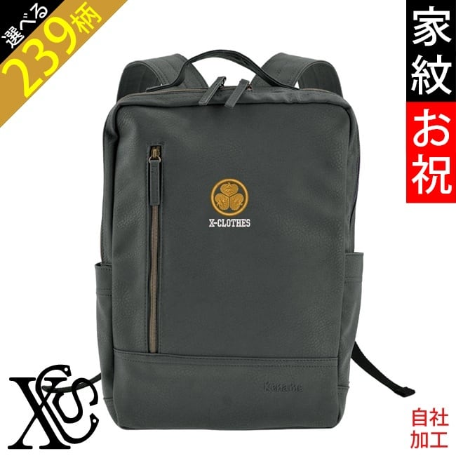家紋お祝 還暦 ワンポイント 刺繍 フェイクレザー リュックサック メンズ レディース スクエア型 合皮 バッグ 雑貨 グッズ 自社ブランド 柄 丸に 五瓜 桔梗 巴 藤 羽 菱 唐花 木瓜 蔦 桐 クリスマス ori-a-bag96-b07-s
