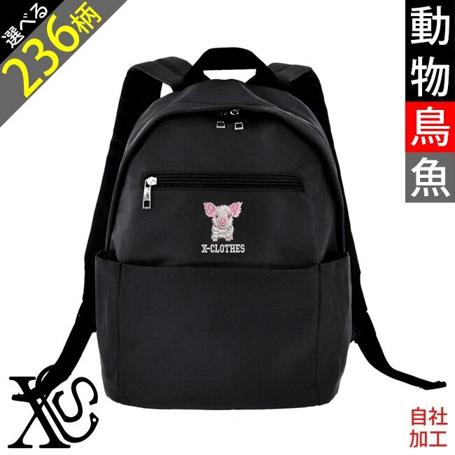 動物鳥魚 刺繍 オリジナル ワンポイント ツイル 多ポケット スポーティー リュックサック レディース バッグ 雑貨 グッズ 自社ブランド 柄 馬 豚 魚 クリスマス ori-a-bag97-b06-s