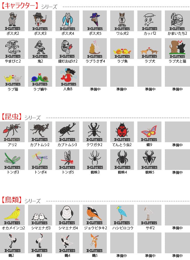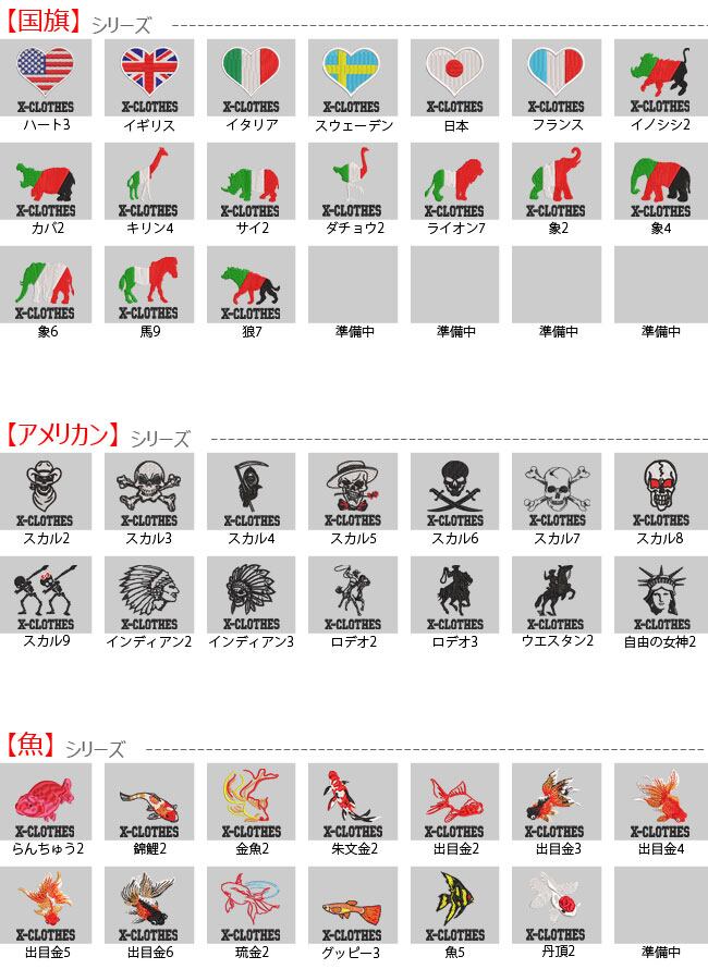 対応刺繍一覧:X-CLOTHES 【 】 1 2 3 4 5 6 7 8 9 - Accent mobera X-CLOTHES 足跡 王冠 ギター グット 自転車 銃 船 星 レース柄 折紙 靴 ゴルフ 音符 バイオリン 侍 日本地図 ハート さくら キューピッド イギリス イタリア スウェーデン 日本 フランス イノシシ カバ キリン サイ ダチョウ ライオン 象 馬 狼 ボス ワル カッパ かまいたち やまびこ 鬼 提灯おばけ ラブうさぎ ラブ魚 ラブ 犬 猫 蝸牛 人魚 スカル インディアン ロデオ ウエスタン 自由の女神 富士山 和太鼓 祭り 相撲 龍 らんちゅう 錦鯉 金魚 朱文金 出目金 琉金 グッピー 丹頂 カブトムシ クワガタ てんとう虫 蝶 トンボ 蜘蛛 パンダ ユニコーン コアラ ウサギ リス 犬 恐竜 コブラ 蛇 トカゲ カエル お化け かぼちゃ コウモリ 魔女 オカメインコ シマエナガ ジョウビタキ ハシビロコウ 鶴 花 かぼちゃ トマト 人参 唐辛子 キウイ さくらんぼ スイカ パイナップル ぶどう みかん レモン 楓 ハロウィン 国旗 動物 植物 虫 昆虫 果物 野菜 グッズ 雑貨 プレゼント 誕生日 ギフト 天然記念物 アホウドリ アマミノクロウサギ イリオモテヤマネコ オオサンショウウオ オオヤマネコ カササギ カモシカ コウノトリ トキ
