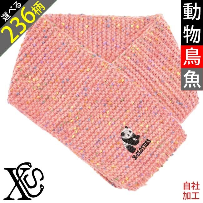 動物鳥魚 刺繍 オリジナル ワンポイント カラフル ミックス ニット マフラー レディース メンズ キッズ 子供 ストール 雑貨 グッズ 自社ブランド 柄 馬 豚 魚 クリスマス ori-aw-st26-g06-s