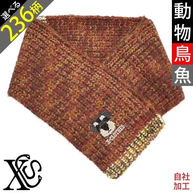 動物鳥魚 刺繍 オリジナル ワンポイント ざっくり編み ニット マフラー レディース メンズ キッズ 子供 ストール 雑貨 グッズ 自社ブランド 柄 馬 豚 魚 クリスマス ori-aw-st28-b06-s