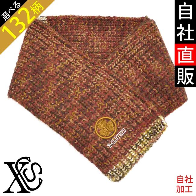 家紋 ワンポイント 刺繍 ざっくり編み ニット マフラー レディース メンズ キッズ 子供 ストール 雑貨 グッズ 自社ブランド 柄 丸に 五瓜 桔梗 巴 藤 羽 菱 唐花 木瓜 蔦 桐 クリスマス ori-aw-st28-b07-s | 刺繍の森X-CLOTHES【公式通販サイト】