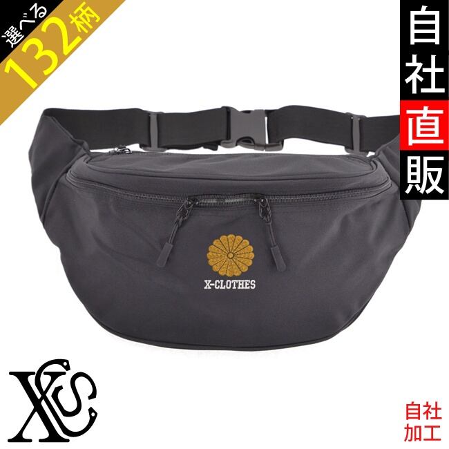 家紋 ワンポイント 刺繍 大きいサイズ ウエストポーチ ボディバッグ ウエストバッグ メンズ レディース アウトドア スポーツテイスト 雑貨 グッズ 自社ブランド 柄 丸に 五瓜 桔梗 巴 藤 羽 菱 唐花 木瓜 蔦 桐 クリスマス ori-a-bag98-b07-s | 刺繍の森X-CLOTHES【公式通販サイト】