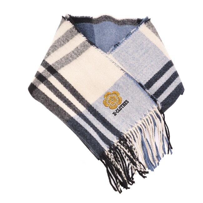 家紋 ワンポイント 刺繍 細めのサイズ感 チェックマフラー レディース メンズ マフラー 雑貨 グッズ 自社ブランド 柄 丸に 五瓜 桔梗 巴 藤 羽 菱 唐花 木瓜 蔦 桐 クリスマス ori-aw-st30-g07-s