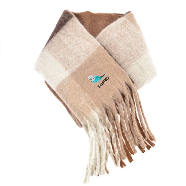 リアル文鳥 セキセイインコ 犬 猫 ワンポイント 刺繍 ふんわり触り心地が良く ボリュームフリンジ マフラー チェック柄 ストール レディース メンズ 雑貨 グッズ 自社ブランド 柄 野鳥 鳥獣戯画 鉄道 ハリネズミ クリスマス ori-aw-st32-g08-s | 刺繍の森X-CLOTHES【公式通販サイト】