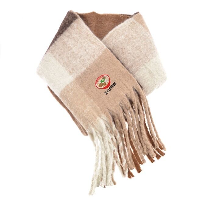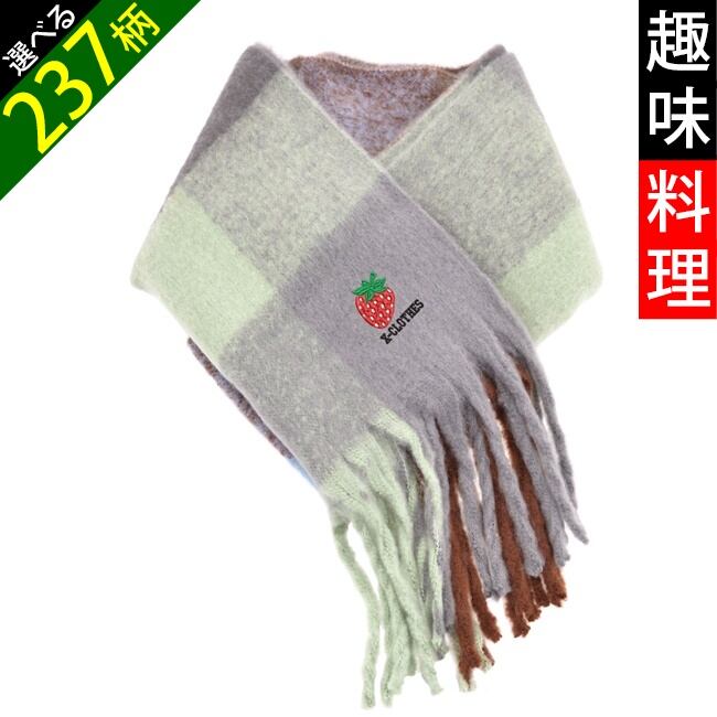 面白 野菜 果物 電車 花 ワンポイント 刺繍 ふんわり触り心地が良く ボリュームフリンジ マフラー チェック柄 ストール レディース メンズ 雑貨 グッズ 自社ブランド 柄 クリスマス ori-aw-st32-g09-s