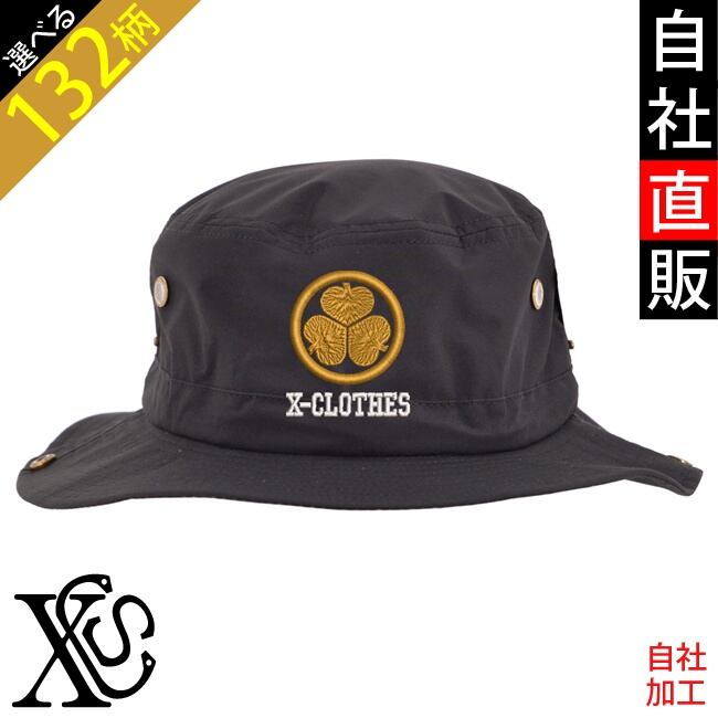 家紋 ワンポイント 刺繍 テフロン加工 撥水 アドベンチャーハット メンズ レディース 帽子 畳める アウトドア キャンプ サイズ調整可能 雑貨 グッズ 自社ブランド 柄 丸に 五瓜 桔梗 巴 藤 羽 菱 唐花 木瓜 蔦 桐 クリスマス ori-a-cap53-b07-s | 刺繍の森X-CLOTHES【公式通販サイト】