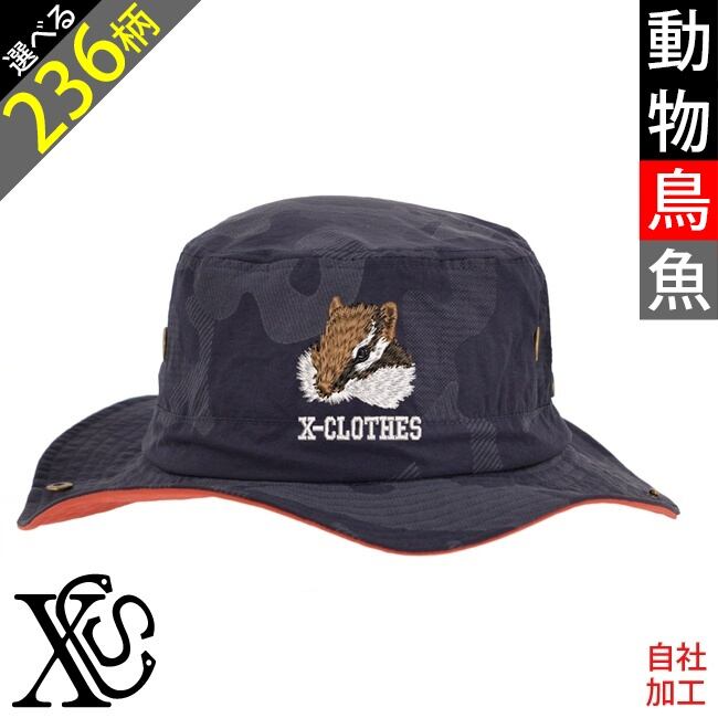 動物鳥魚 刺繍 オリジナル ワンポイント 撥水 迷彩 アドベンチャーハット レディース メンズ 帽子 アウトドア キャンプ 畳める サイズ調整可能 雑貨 グッズ 自社ブランド 柄 馬 豚 魚 クリスマス ori-a-cap54-b06-s