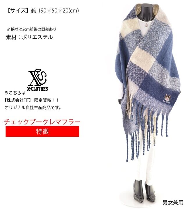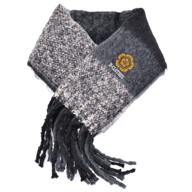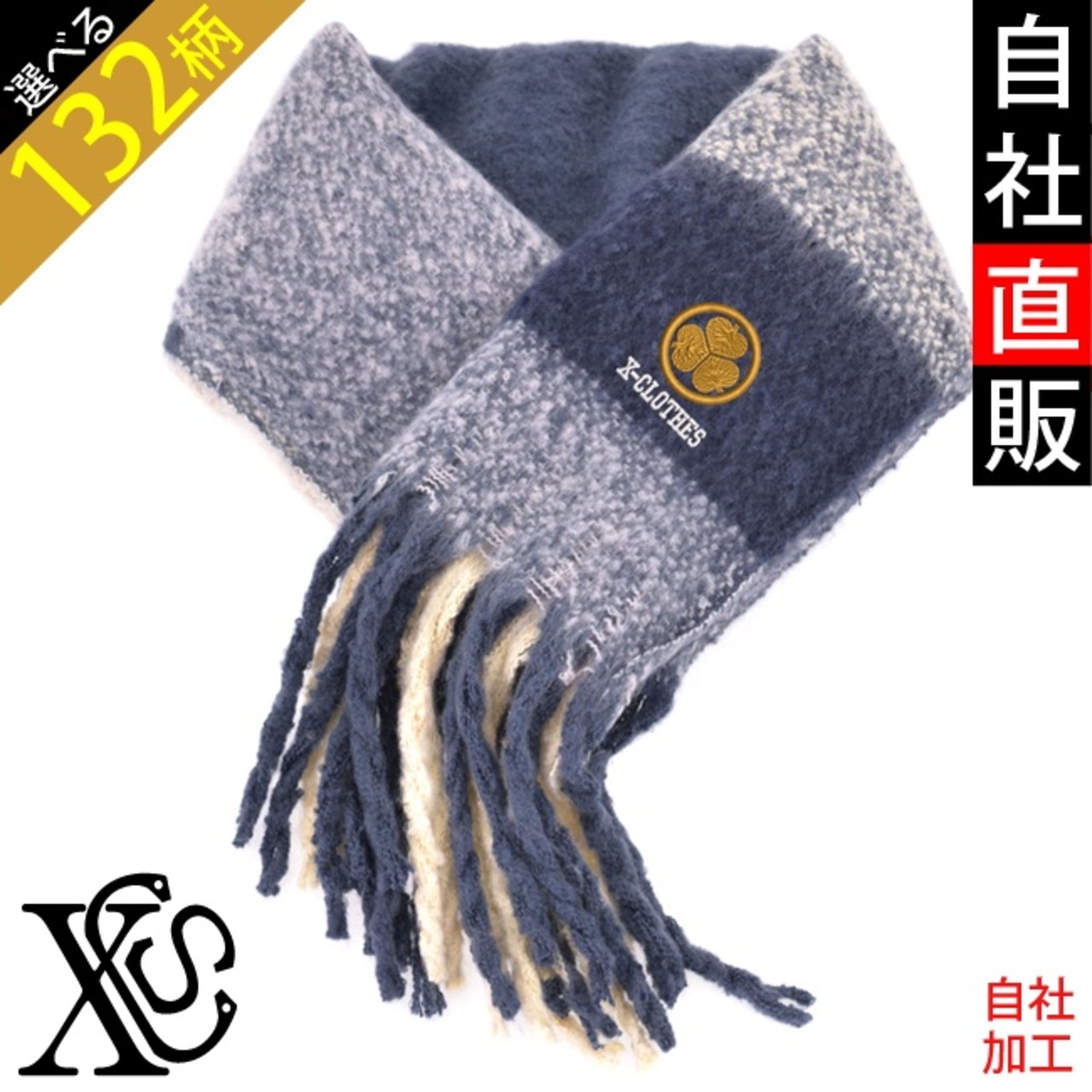 家紋 ワンポイント 刺繍 ブークレ チェック マフラー レディース メンズ 防寒 ショール 大判 ストール チェック 雑貨 グッズ 自社ブランド 柄 丸に 五瓜 桔梗 巴 藤 羽 菱 唐花 木瓜 蔦 桐 クリスマス ori-aw-st38-b07-s | 刺繍の森X-CLOTHES【公式通販サイト】