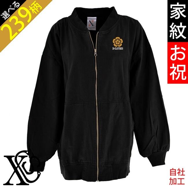 家紋お祝 還暦 ワンポイント 刺繍 パフスリーブロング丈 MA-1 ライトアウター ブルゾン ミリタリー ジャケット ノーカラー レディース 雑貨 グッズ 自社ブランド 柄 丸に 五瓜 桔梗 巴 藤 羽 菱 唐花 木瓜 蔦 桐 クリスマス ori-a-jkt16-b07-s