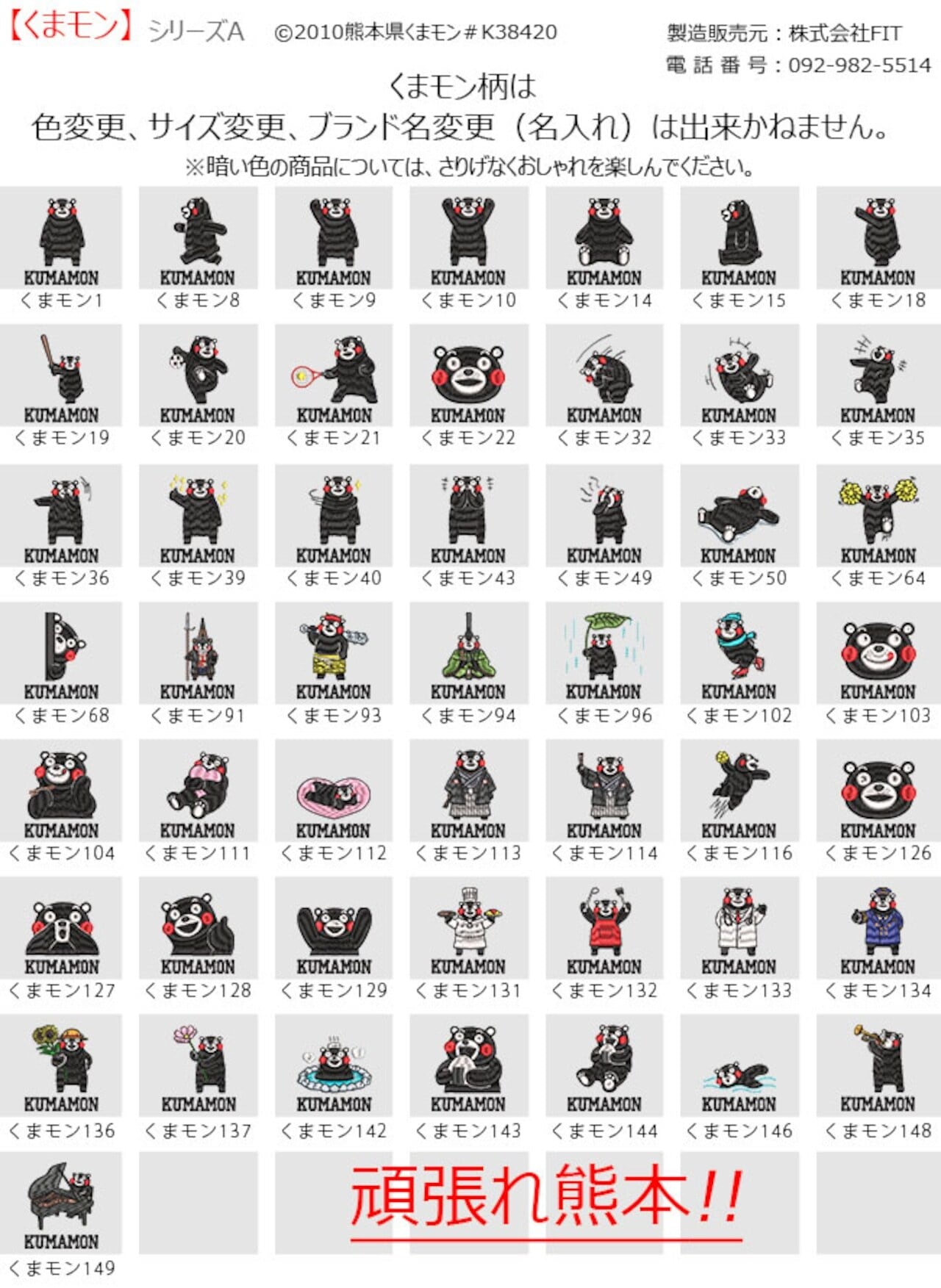 刺繍 くまモン グッズ 選べる100種類以上
